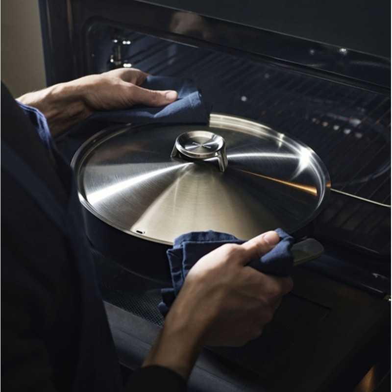 - Rukojeť z nerezové oceli je bezpečná a odolná při vaření v troubě.