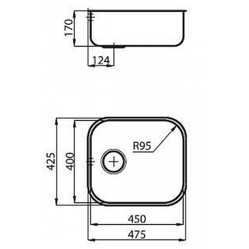 FOSTER Serie UM nerezový dřez, 475x425mm 1811 050- vnitřní rozměry: 450x400x180 mm