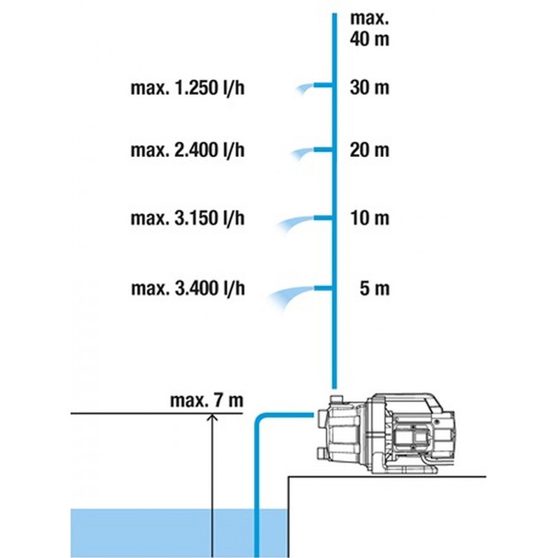 - Max. čerpací výška / tlak: 40 m / 4,0 bar