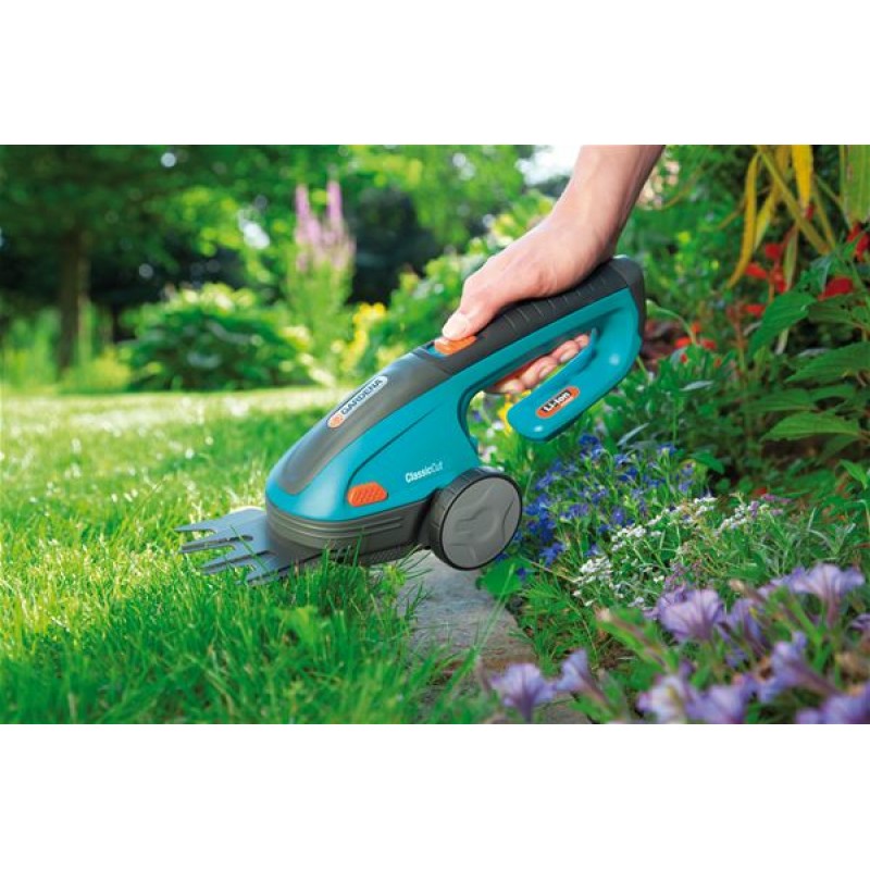 S akumulátorovými nůžkami na trávu ClassicCut od společnosti GARDENA můžete pohodlně stříhat okraje trávníku bez přívodní šňůry. Pokud jsou nůžky vybaveny nožem na trávu a živé ploty s šířkou 8 cm, jsou vhodné i pro tvarování živých plotů.Díky vysoce výkonným dobíjecímu lithiovým akumulátoru se snadnou údržbou je umožněna rychlá a snadná práce. Díky ergonomické rukojeti padnou akumulátorové nůžky na trávu dobře do ruky a vysoký výkon zaručuje dosahování vynikajících výsledků stříhání. Výměnné kvalitní nože jsou přesně broušené a opatřené nepřilnavou povrchovou úpravou. Protože lze nože vyměňovat bez použití nářadí, je tento proces obzvláště snadný, rychlý a bezpečný. Tímto způsobem lze nůžky na trávu snadno přeměnit na nůžky na keře.