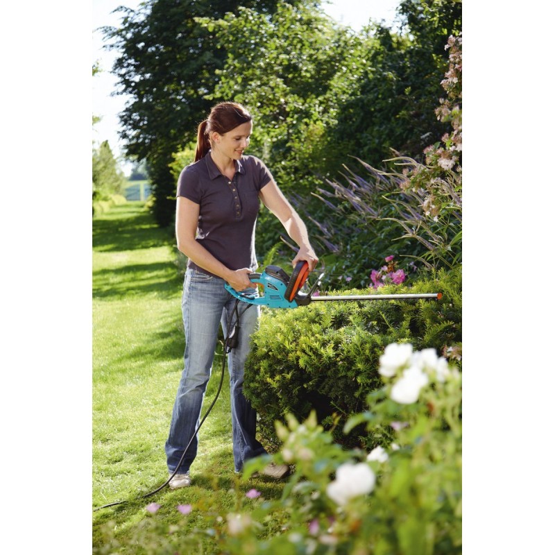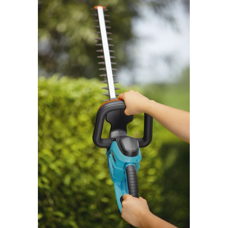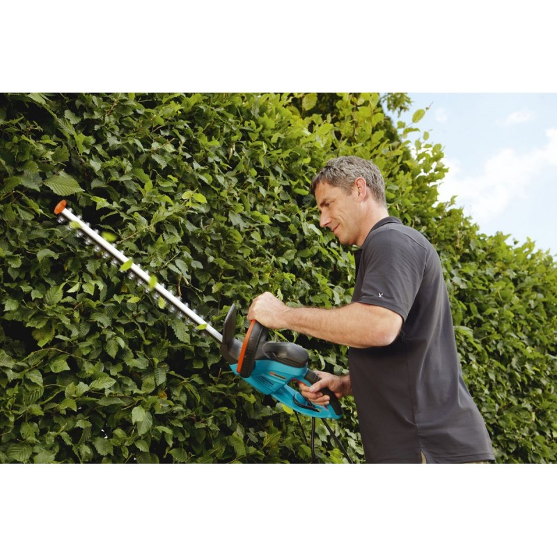 GARDENA elektrické nůžky na živý plot EasyCut 42, 8870-20Lehké elektrické nůžky na živý plot s ergonomicky tvarovanými držadly s velkým spouštěcím tlačítkem pro pohodlnou a bezpečnou práci v každé stříhací situaci. Optimální geometrie nožů zajišťuje účinný, rychlý a čistý střih. Velká životnost nožů. Ochrana před zpětným nárazem: chrání uživatele před zpětným nárazem při stříhání v blízkosti země. Chrání nože a zvyšuje jejich životnost. Odlehčení kabelu v tahu – zabraňuje náhodnému uvolnění prodlužovacího kabelu