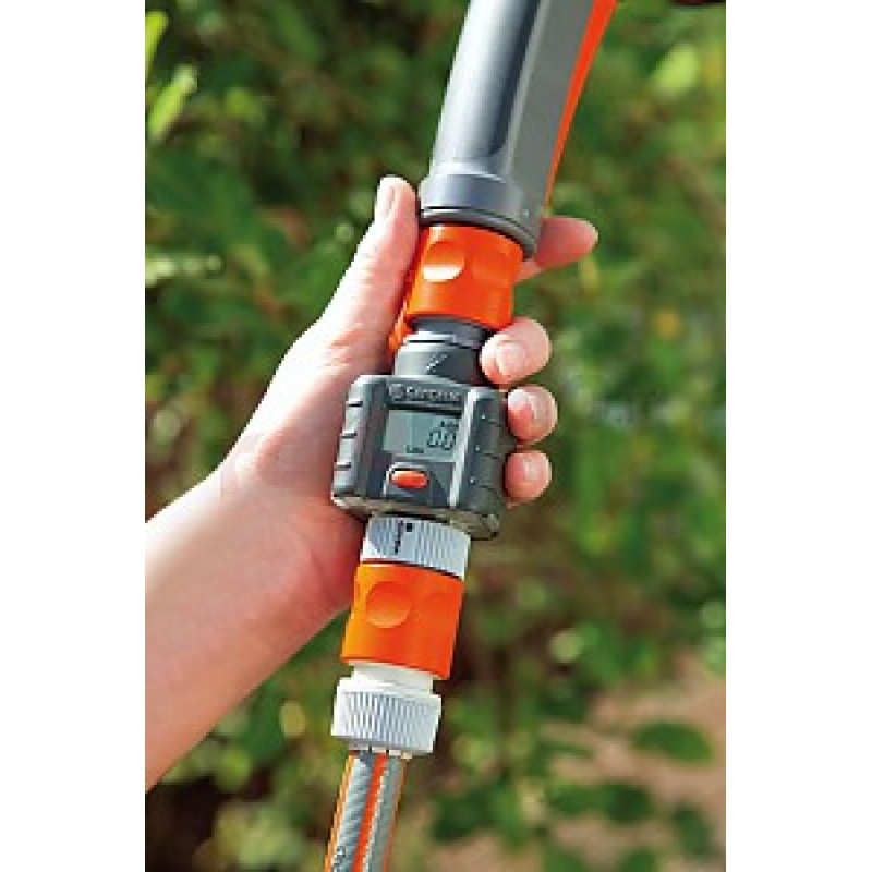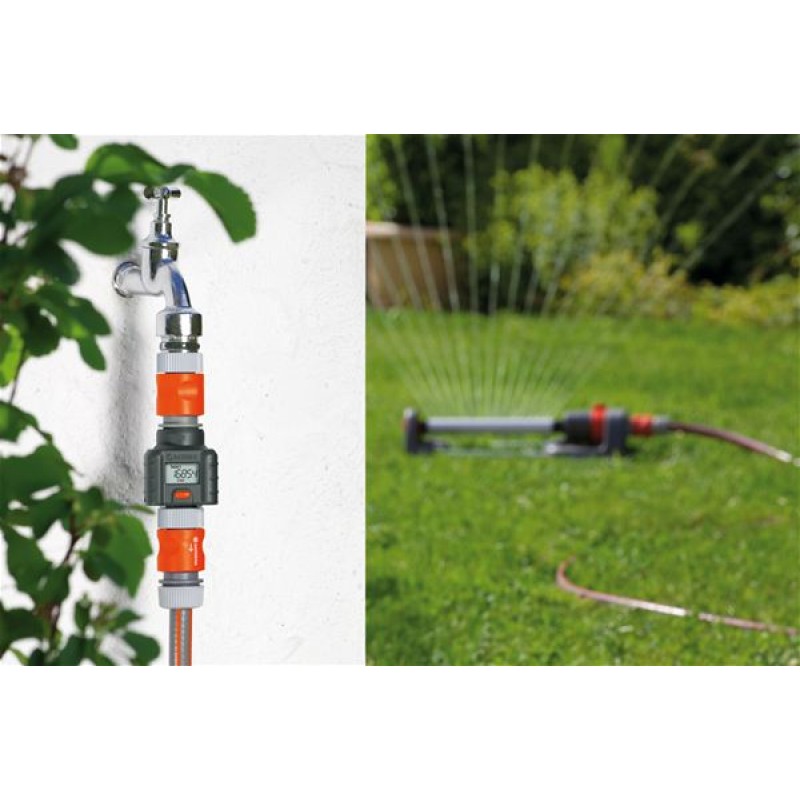 Inovativní GARDENA průtokoměr umožňuje cílené, měřené zavlažování. Na první pohled můžete vidět 1. spotřebu vody za den, 2. spotřebu vody na sezonu, 3. spotřebu vody na jedno zalévání, 4. průtok vody v litrech za minutu. Spotřebované množství vody lze odečíst kdykoliv na velkém displeji, a tím řídit její spotřebu. Pomocí jediného tlačítka pro všechny funkce, je průtokoměr snadno ovladatelný. Až doteď bylo zavlažování věcí osobního úsudku a typu dne. Průtokoměr vám zajistí lepší kontrolu. Od této chvíle můžete zavlažovat cíleně, podle požadavků a systematicky. To je dobré nejen pro vaši zahradu, ale také životní prostředí a peněženku. Inteligentní průtokoměr je na baterie a může být ihned připojen k vodovodnímu kohoutku, ke sprše, postřikovači nebo k čerpadlu. Robustní průtokoměr, který je odolný vůči nárazu, se jednoduše naklikne na šroubení nebo rychlospojku pro standardní hadice a ihned dodává důležité údaje prostřednictvím aktivního měření. Integrovaný ukazatel stavu baterie na displeji zajišťuje přesný chod. Tento inovativní průtokoměr zvyšuje povědomí o spotřebě vody.Maximální teplota provozní teplota vody je 40°C.