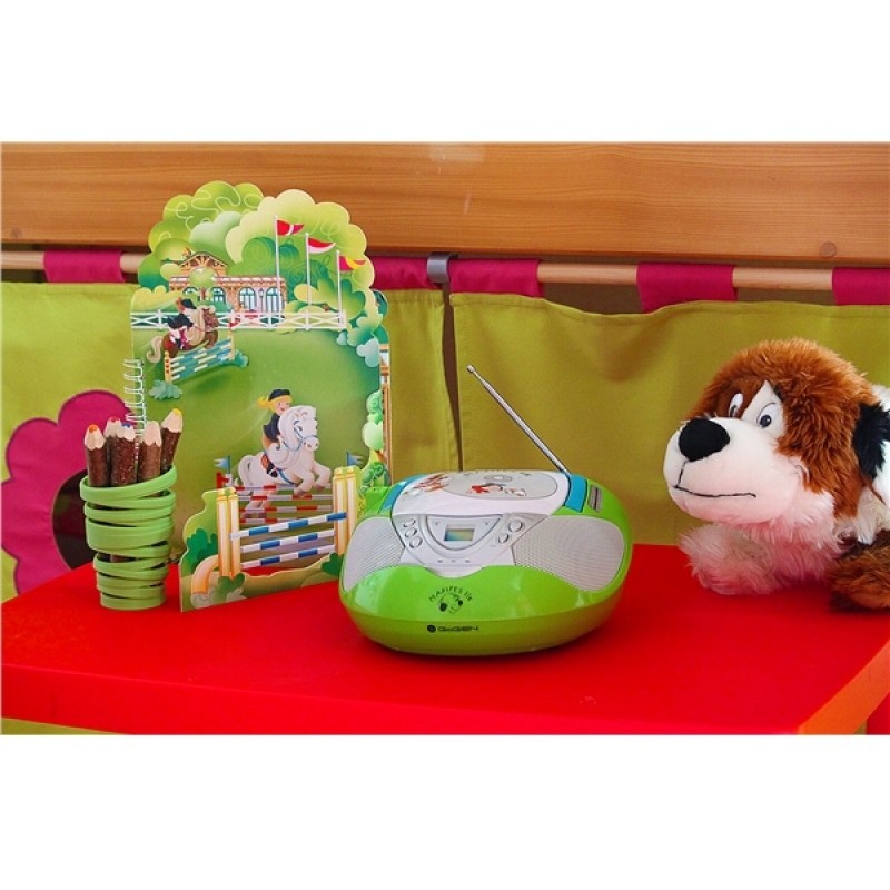 Obsluhu rádia / přehrávače si děti velmi rychle osvojí díky přehlednosti tlačítek a výraznému LCD displeji pro snažší orientaci v přehrávaných skladbách nebo volbě rádiových frekvencí.