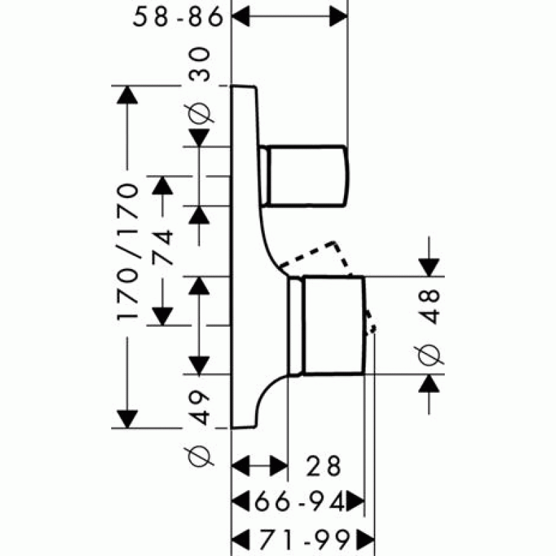 Hansgrohe AXOR MASSAUD Páková vanová baterie pod omítku s bezp. komb., chrom 18457000- s integrovanou bezpečnostní kombinací podle EN 1717