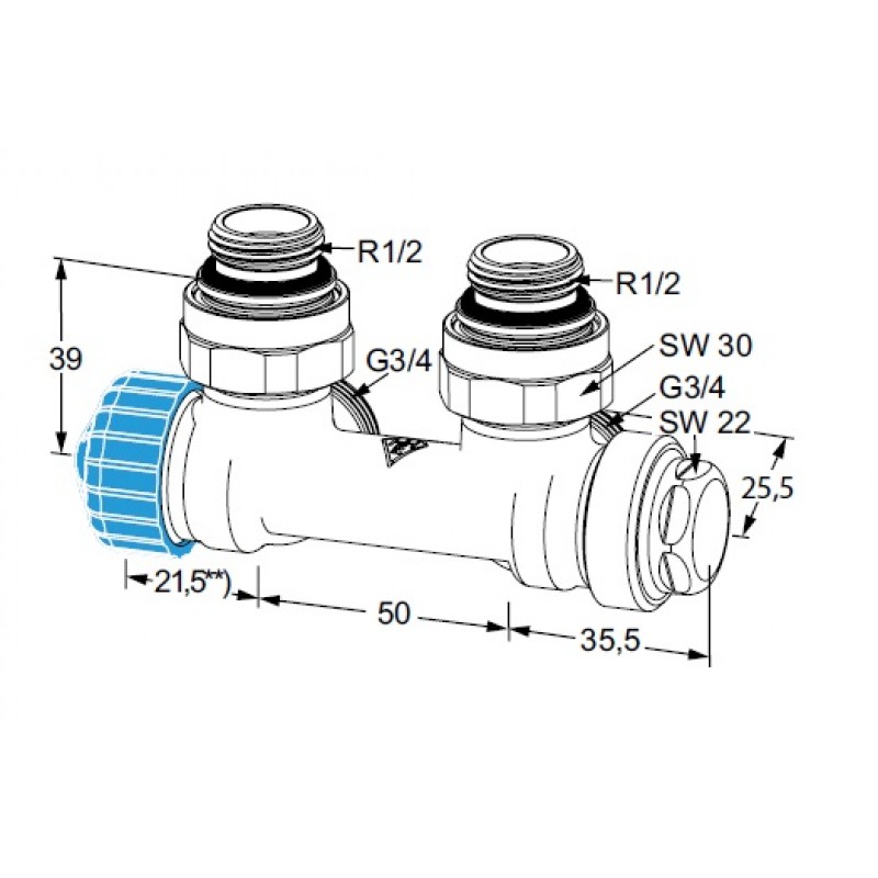 Radiátorový ventil pro otopná tělesa s dvoubodovým připojením,