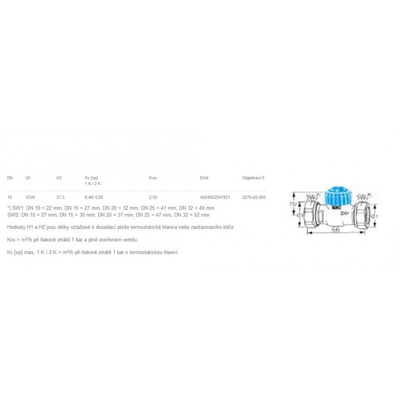 HEIMEIER radiátorový ventil samotížný DN 15-1/2" přímý, plošně těsnicí 2276-02.000