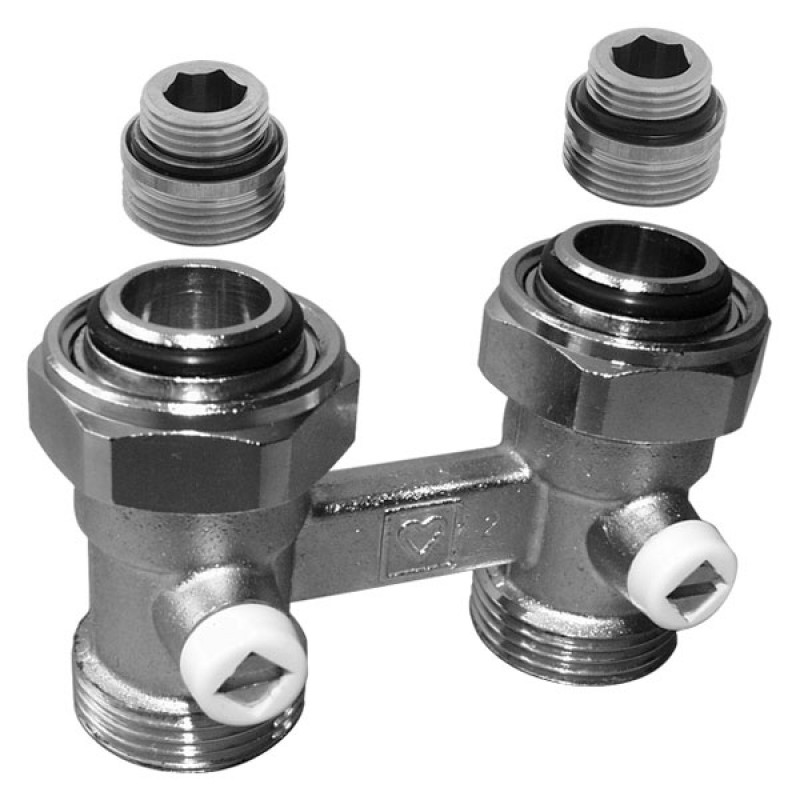 připojení na topné těleso 1/2" pomocí přiložených adaptérů nebo 3/4“ bez adaptérů (kónické těsnění).