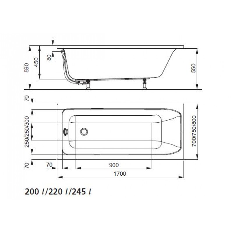 Vana Ideal Standard ACTIVE SINGLE obdélníková se vyrábí v šesti rozměrových variantách, v délkách 150 až 180 cm a v šířkách 70, 75 a 80 cm.