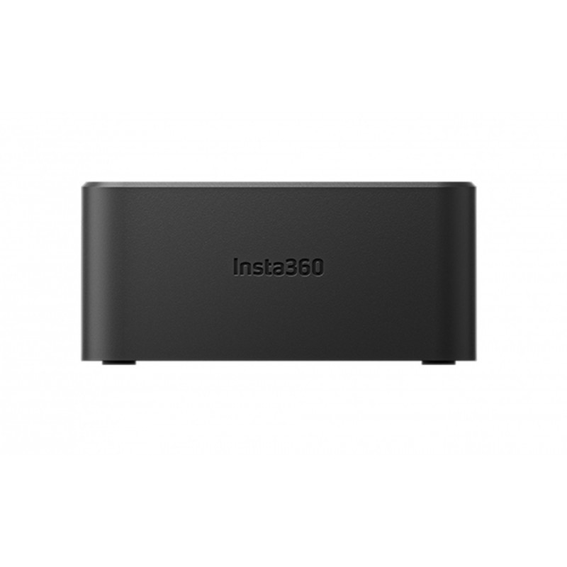 Nabíjecí hub pro tři baterie pro kameru Insta360 X4. Hub nabije 2290 mAh akumulátor za 43 minut (za 26 minut na 80%). Váha: 109g Rozměry: 75 x 62 x 34 mm