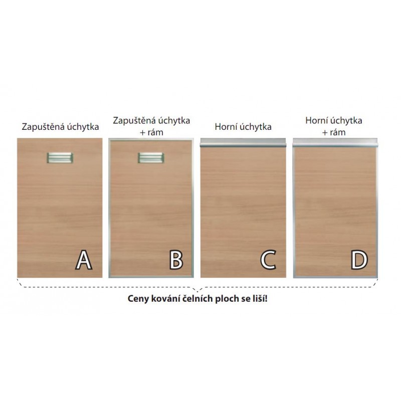 Váš výběr kování má vliv na cenu výrobku. V rámci jedné skříňky nelze kombinovat více typů kování A, B, C, D.