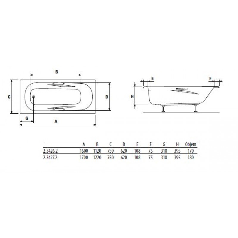 Jika ALMA vana 170x75cm bílá hladký povrch, bez madel H2342720000001