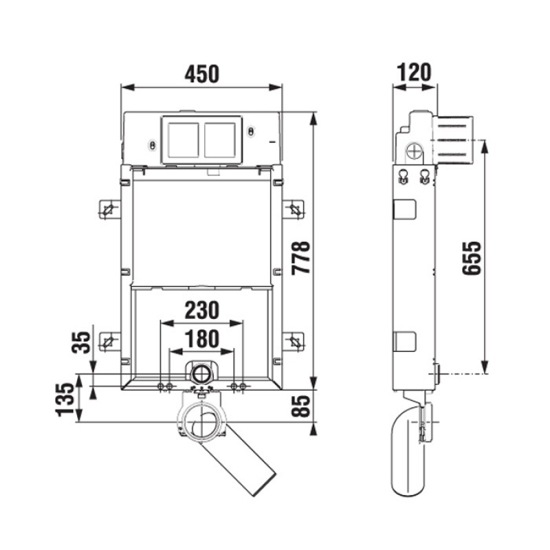 Ekonomická varianta pro závěsné klozety. K namontování na zeď, s nutností obezdění.