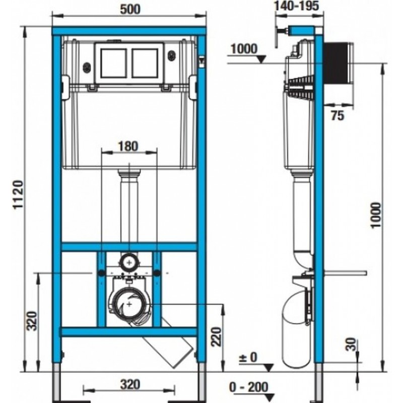 Výhody: Splachovací ventil je univerzální, tlačítka lze kdykoliv v průbhu užívání zaměnit. Následné přezdění v rozmezí 15-75 mm. Pevný rám, nastavitelnost finální výšky klozetu.