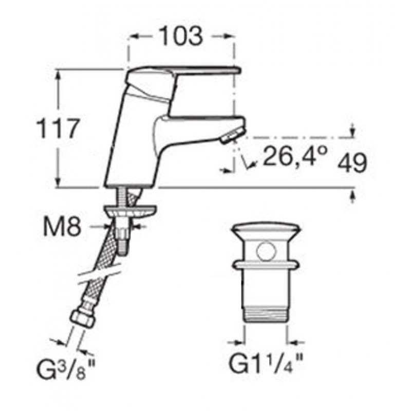 Jika TIGO Umyvadlová baterie stojánková se zátkou Click-Clack chromRozměry výrobku: