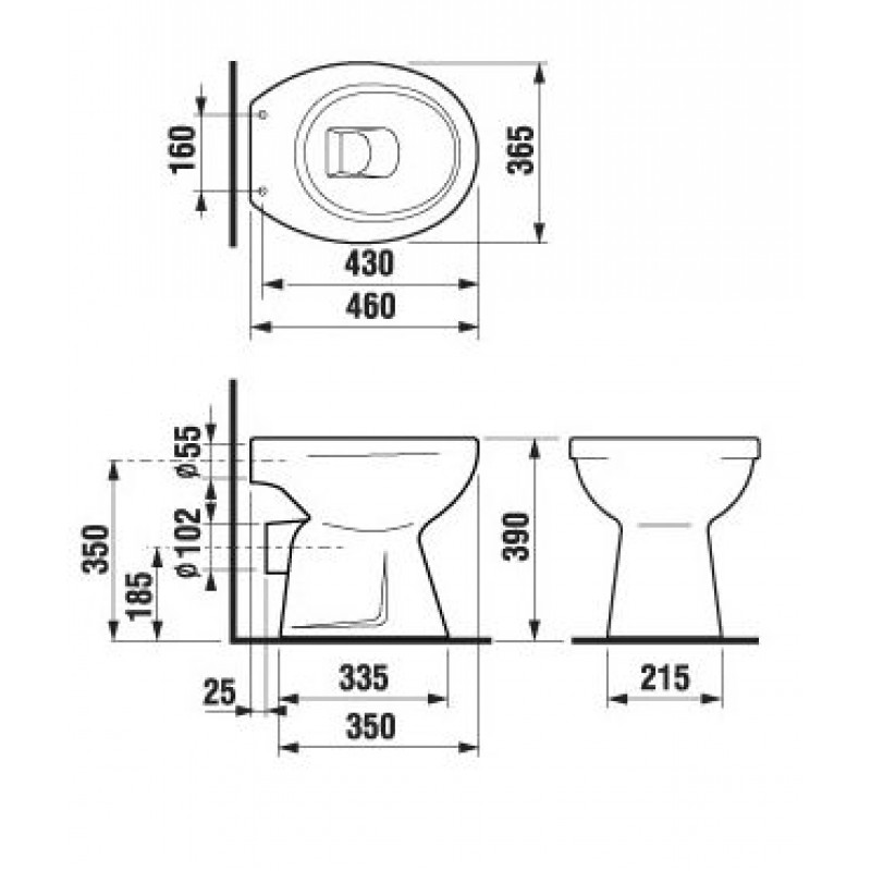 Jika ZETA PLUS Samostatně stojící klozet, hluboké splachování, vodorovný odpadRozměry výrobku: