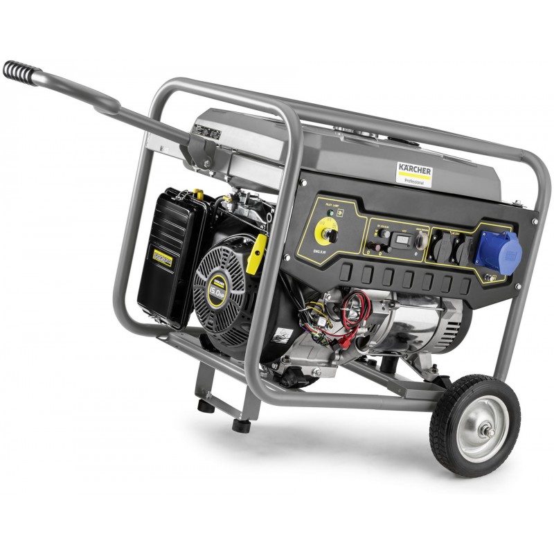 Synchronní generátor 230 V spolehlivě poskytuje trvalý výkon 5,5 kW. Silný benzinový motor pro pracovní intervaly min. 6,5 hodiny na jednu nádrž.Provoz vysokotlakých čističů Kärcher