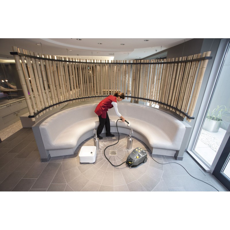 Kärcher SG 4/4 je kompaktní profesionální parní čistič určený pro efektivní, ekologický a hygienický úklid široké škály povrchů – zcela bez použití chemických čisticích prostředků. Díky tlaku páry až 4 bary dosahuje certifikované dezinfekce a je ideální pro použití v hotelech, gastronomii, zdravotnictví, wellness provozech i komerčních prostorách.