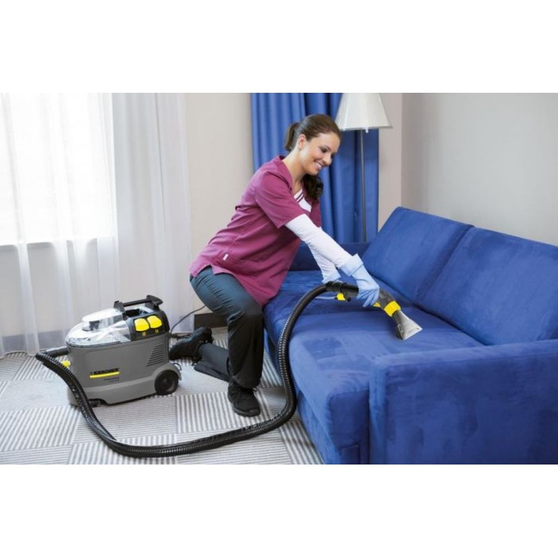 Své silné stránky uplatní Puzzi 8/1 C obzvláště při čištění čalounění a interiérů vozů. Kompaktní, prostorově úsporná konstrukce.