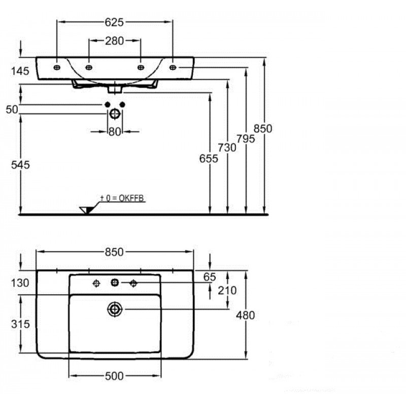 KERAMAG Renova Nr. 1 Plan nábytkové umyvadlo bez otvoru 85 x 48 cm 122188000umyvadlo s přepadem