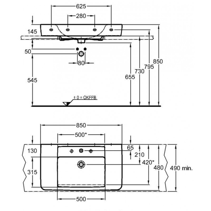 KERAMAG Renova Nr. 1 Plan umyvadlo na desku, s otvorem 85 x 48 cm 125185000umyvadlo na desku