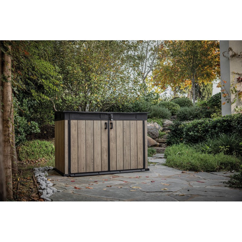 Skříň SIGNATURE od značky Keter nabízí elegantní a praktické řešení pro uložení popelnic, ale i dalšího zahradního náčiní. Díky objemu 2.020 l v ní lze uschovat až dvě popelnice o objemu 360 l nebo tři popelnice o objemu 240 l.