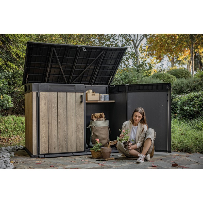 - Jednotný design: Skříň můžete doplnit dalšími výrobky z řady SIGNATURE, jako je zahradní domek či vysoká skříň, pro dokonalý vzhled celé zahrady.