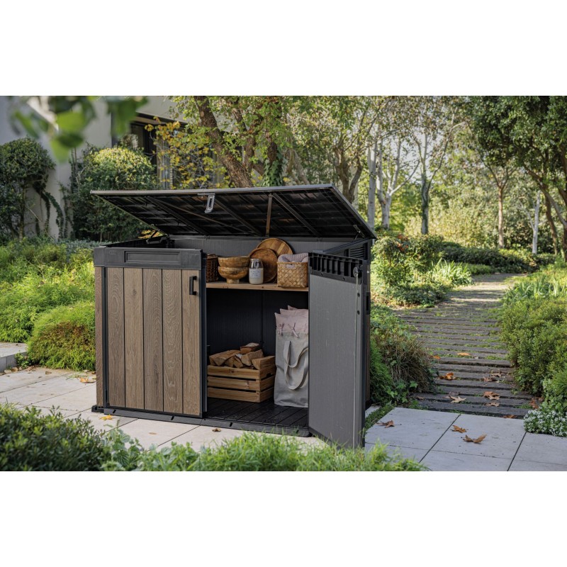 - Jednotný design: Skříň můžete doplnit dalšími výrobky z řady SIGNATURE, jako je zahradní domek či vysoká skříň, pro dokonalý vzhled celé zahrady.