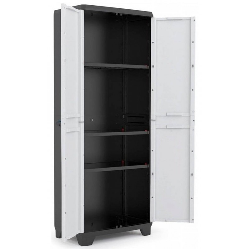 KIS LINEAR HIGH skříň 68x39x173cm šedá/černáSkříň je vhodná do garáže, sklepa či víceúčelové místnosti na uspořádání nejrůznějších věcí. Uvnitř je vybavena třemi policemi, které si můžete variabilně nastavit. Nosnost police je max. 15 kg.