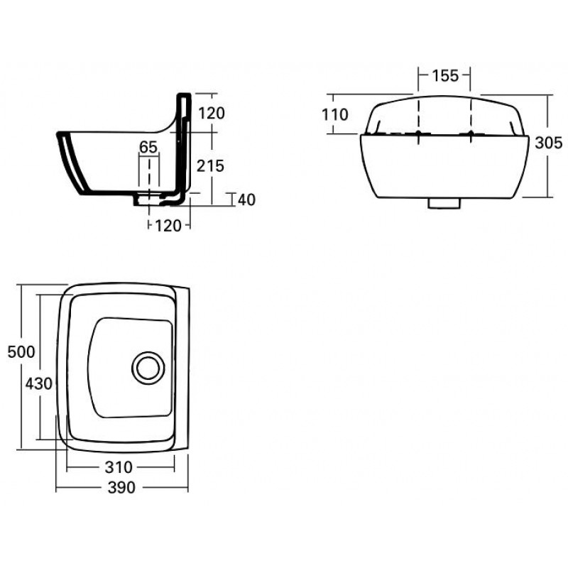 KOLO Boston keramická výlevka 50 x 39 cm, s přepadem K21161000- rozměry: 50 x 39 x 30 cm