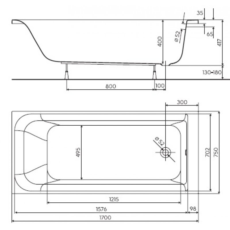 KOLO Rekord pravoúhlá vana 170 x 75 cm XWP1671000- materiál: akrylát