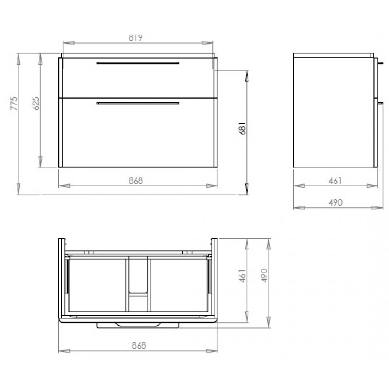 KOLO Traffic skříňka pod umyvadlo 90 cm, se zásuvkami, závěsná, platinově šedá 89438000- barevné provedení: platinově šedá