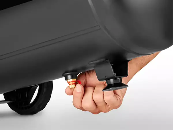 Kondenzovanou vodu v nádrži lze snadno vypustit přes vypouštěcí zátku ve spodní části.
