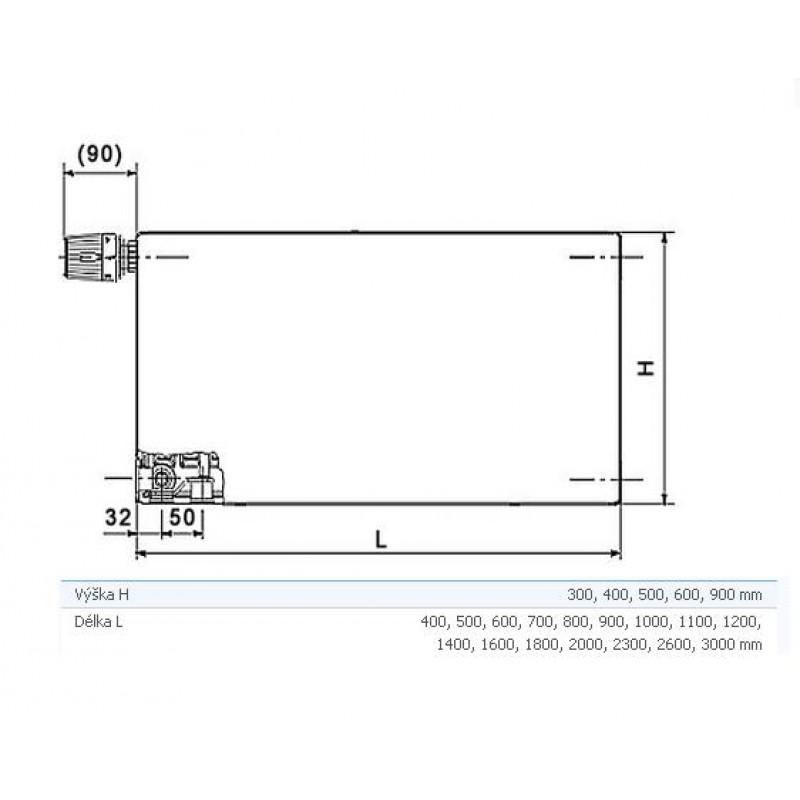 KORADO deskový radiátor typ PLAN VKL 11 300 / 900 11-030090-I0-10Model RADIK PLAN VKL je deskové otopné těleso v provedení PLAN a v provedení VENTIL KOMPAKT, které umožňuje levé spodní připojení na otopnou soustavu s nuceným oběhem. Ze zadní strany jsou přivařeny dvě horní a dolní příchytky, otopná tělesa o délce 1800 mm a delší mají navařena šest příchytek.