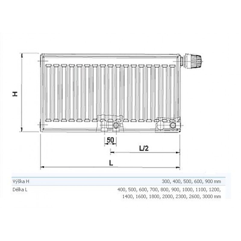 KORADO deskový radiátor typ VKM 22 900 / 500 22-090050-G0-10Desková otopná tělesa RADIK VKM vychází koncepčně z provedení VENTIL KOMPAKT. Originálně řešený vnitřní rozvod umožňuje spodní středové připojení otopného tělesa na otopnou soustavu. Ze zadní strany jsou přivařeny dvě horní a dolní příchytky.