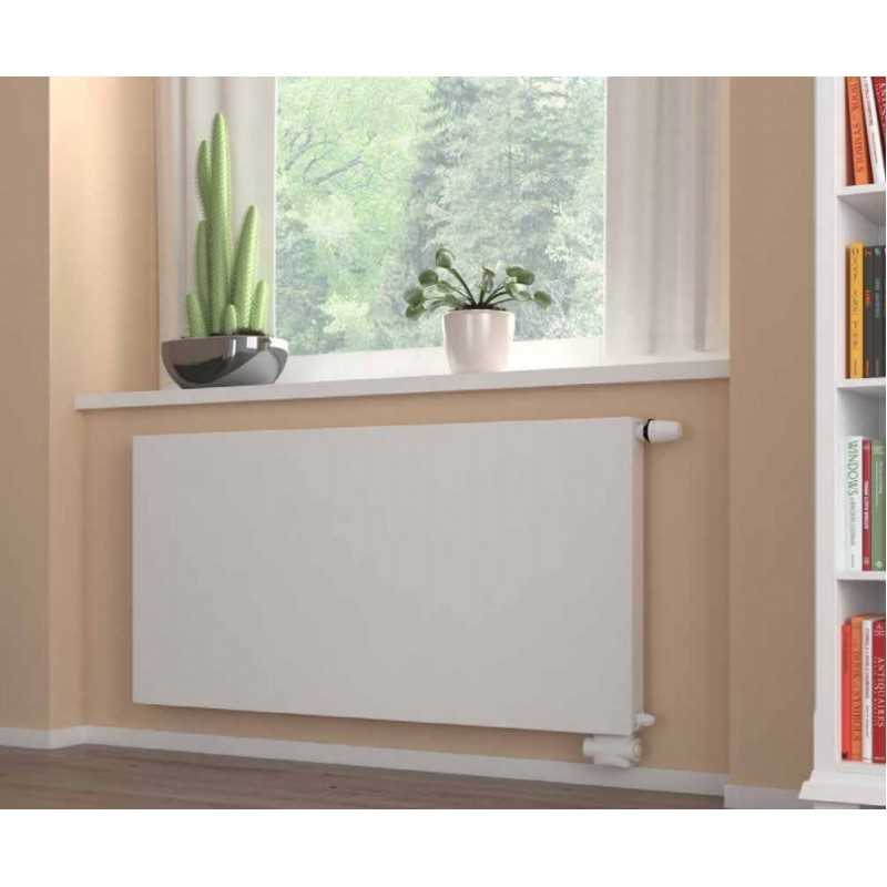 Model RADIK X-CONTROL PLAN VK je deskové otopné těleso s hladkou čelní deskou v provedení X-CONTROL a v provedení VENTIL KOMPAKT, které umožňuje pravé spodní připojení na otopnou soustavu s nuceným oběhem. Ze zadní strany nejsou navařeny příchytky.