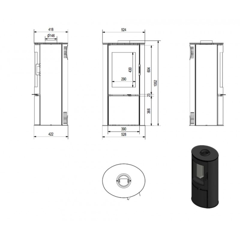 Průměr kouřovodu: 150 mm
