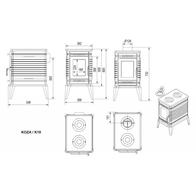 KRATKI KOZA K10 TF krbová kamna černá