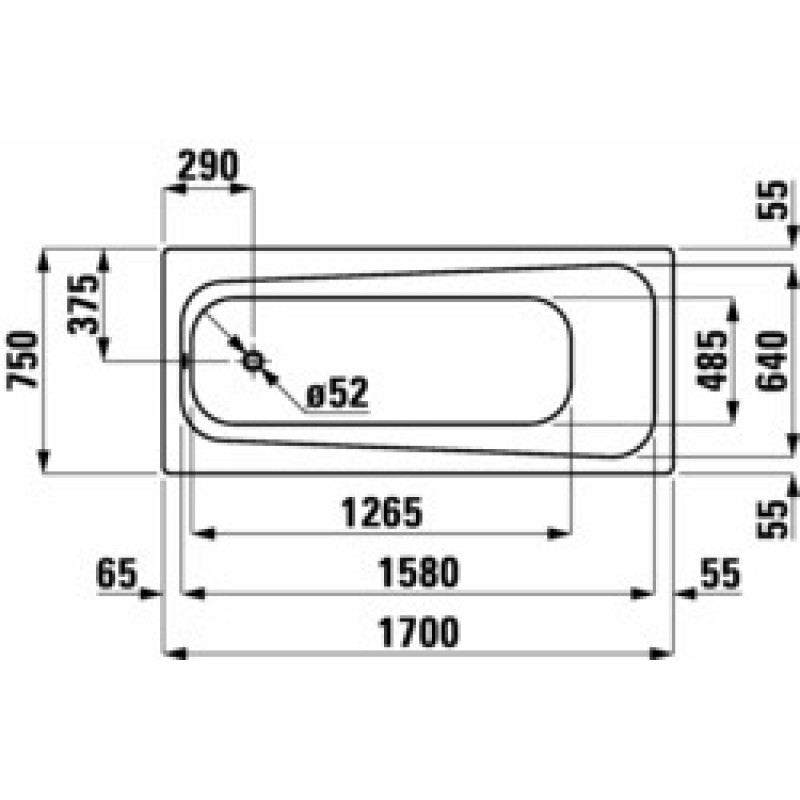 LAUFEN MODERNA PLUS Ocelová vana 170 x 75 cm, bílá, 124 l, 2.2513.0.000.040.1- ocelová smaltovaná vana
