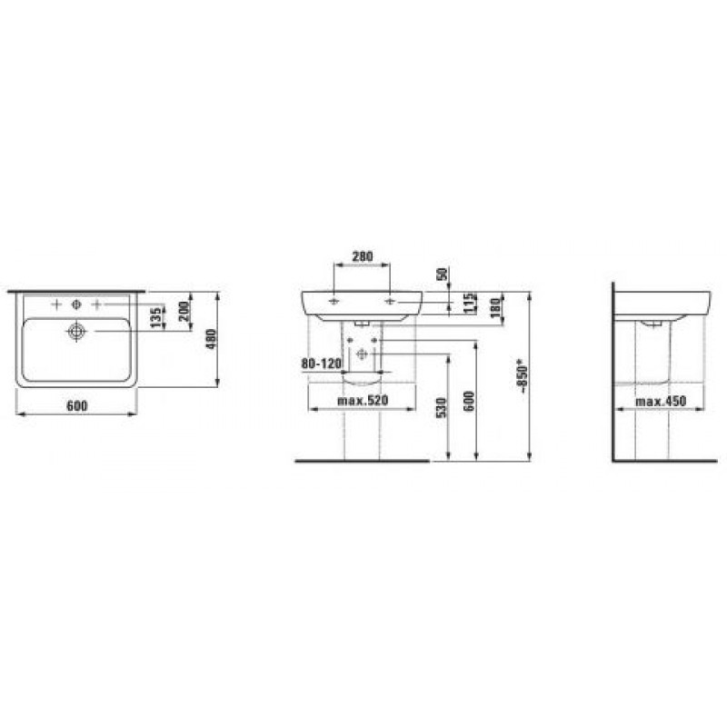 LAUFEN PALACE Umyvadlo do nábytku 60x48cm s otvorem, bílé 8.1070.2.000.104.1Umyvadlo s otvorem pro baterii, v barevném provedení Bílá