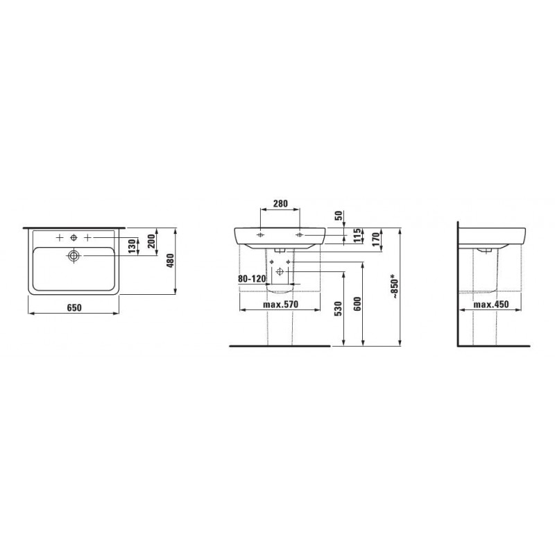 Laufen PRO A - Umyvadlo 65x48, 8.1895.3.000.104.1