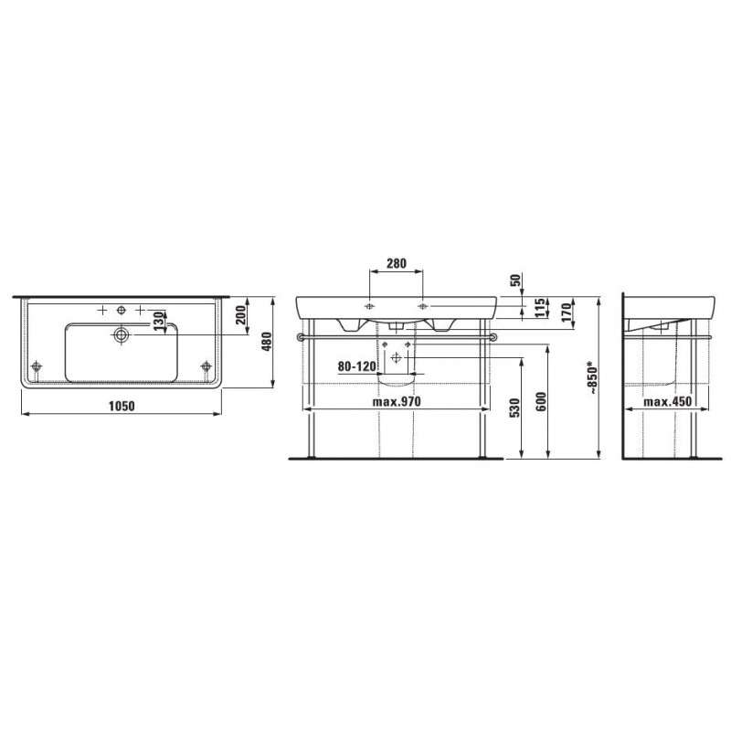 LAUFEN PRO A Umyvadlo nábytkové 105x48 cm, bez otvoru, broušené, bílé 8.1295.8.000.109.1- barevné provedení bílá
