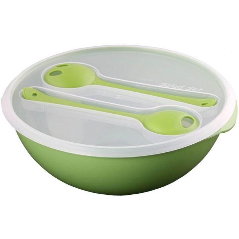 LIFE STORY Salátová mísa s víkem a servírovacím příborem 3,5 lPraktická salátová mísa s víkem i příborem, která je vhodná na cesty a dobře těsní. Lze použít v mikrovlnné troubě (bez víka a příboru), myčce nádobí, chladničce a mrazáku