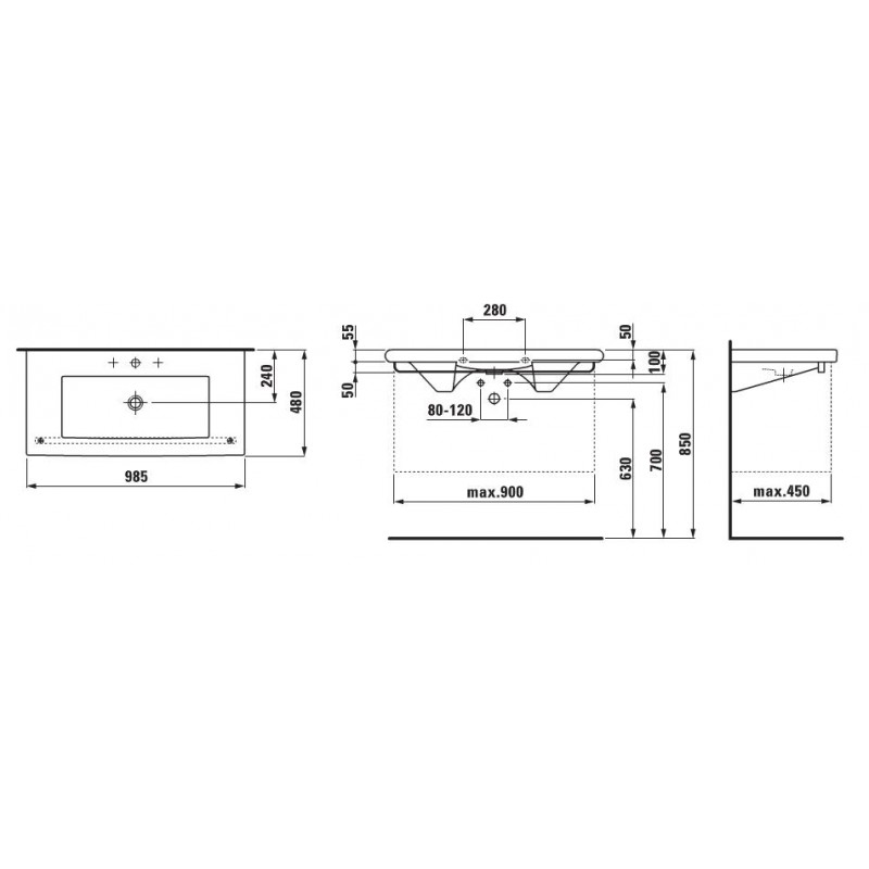LIVING BY LAUFEN 1443.7.000.108.1 Umyvadlo do nábytku 98,5x48 cm, s 3 otvory