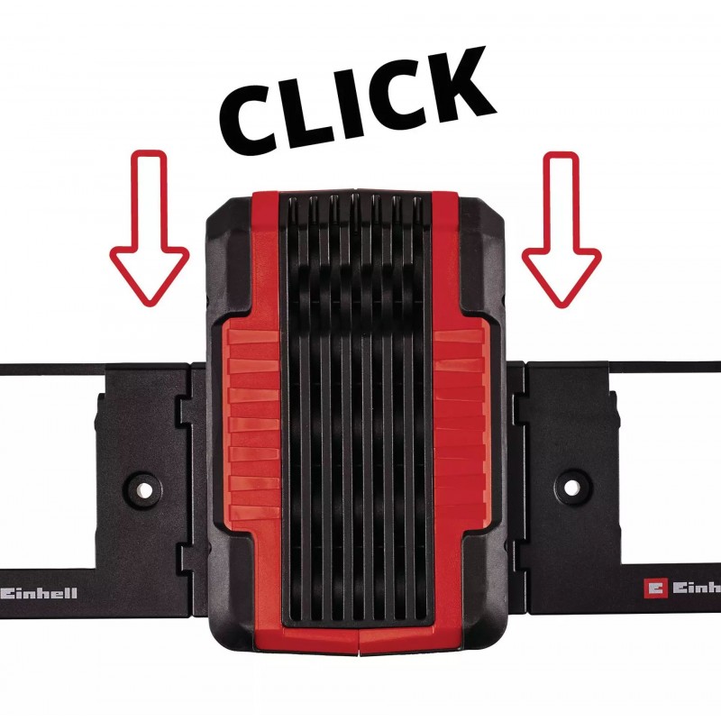 Nyní by žádná dílna neměla být bez originálního nástěnného držáku Einhell Power X-Change. Nejen, že vám umožní odkládat baterie na stěnu prostorově úsporným způsobem, je také vhodný pro montáž vzhůru nohama, například pod pracovní stůl. Takže budete mít vždy baterie na dosah. Dokonce i na cestách hrají držáky na stěně užitečnou roli, protože mohou být také instalovány v obytných automobilech nebo dodávkách. Systém zacvaknutí zaručuje, že baterie během jízdy nevyklouznou z držáků.