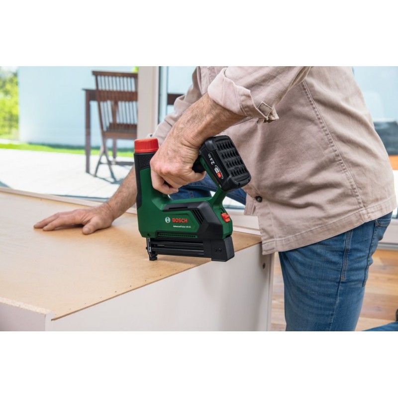 AdvancedTacker 18V-25 je vaše řešení pro snadné upevňování. Díky akumulátorovému designu a funkci 2 v 1 je ideální na širokou škálu projektů, od montáží nábytku až po lištování a další. Tato pružinová sponkovačka pojme jak úzké korunkové sponky, tak hřebíky. 7stupňově nastavitelná síla a frekvence 30 úderů za minutu zajišťují přesné umístění do různých materiálů. Specializované vodicí nástavce, včetně odnímatelného distančního vedení a krytky na vedení, dále zvyšují přesnost. Systém Push + Release zaručuje optimální kontrolu během práce tím, že eliminuje samovolné spuštění. Ergonomická rukojeť, zásobník pro rychlé podávání, okénko pro sledování zásobníku, vestavěné pracovní LED světlo a indikátor akumulátoru umožňují pohodlné dlouhodobé používání. Pusťte se do práce s přiloženým startovacím balíčkem 1 000 sponek a 500 hřebíků. Toto nářadí patří do systému 18V POWER FOR ALL. Jeden akumulátor lze používat s veškerým nářadím 18V POWER FOR ALL.