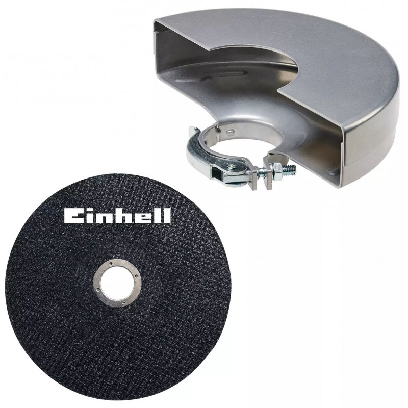 Součástí dodávky je odpovídající 150mm řezný kotouč (zejména vhodný pro řezání trapézového plechu) a kryt kotouče.