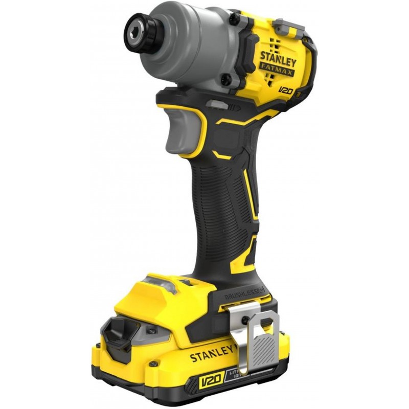 Stanley FatMax SFMCF830D2K-QW: 18V aku bezuhlíkový rázový utahovák 1/4" – 2× 2,0 Ah, nabíječka, kufr Rychloupínací držák nástrojů – pro rychlou a snadnou výměnu příslušenství Kovové pouzdr... Zobrazit celý popis »