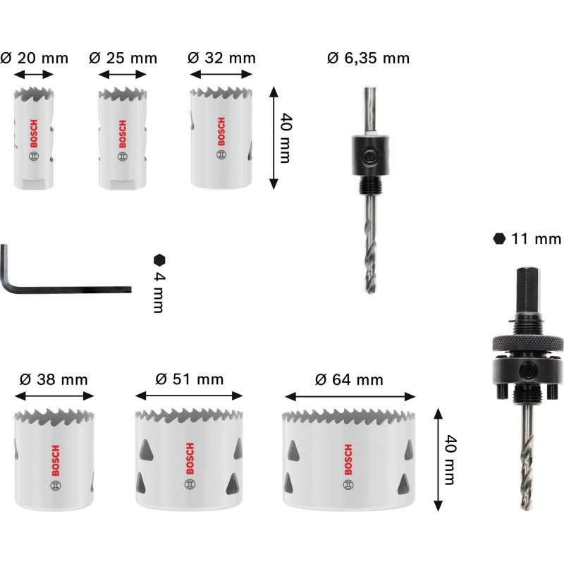 BOSCH Multi Material Sada děrovek se závitem, 20; 25; 32; 38; 51; 64 × 40 mm 2608594613