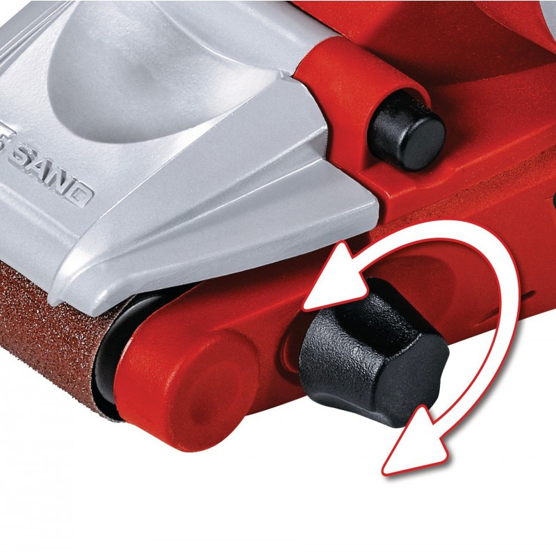 S pásovou bruskou Einhell TE-BS 8540 E mají ambiciózní domácí kutilové ve svém dílenském arzenálu vysoce kvalitní, výkonný brusný přístroj, který umožňuje flexibilní, efektivní broušení. Elektronická regulace otáček umožňuje správnou práci s ohledem na materiál a použití. Extrémně přesný chod pásu lze optimálně nastavit jemným nastavením, brusné pásy jsou během okamžiku vyměněny bez použití nářadí díky aretační páce. Měkký úchop a přídavná rukojeť, kterou lze rovněž nastavit bez použití nářadí, nabízejí vynikající ergonomii a vysoký komfort ovládání brusky TE-BS 8540 E. Čelní kryt lze vyklopit, aby bylo možné opracovat i plochy v blízkosti hrany. Pro bezprašné broušení je pásová bruska vybavena integrovaným odsáváním prachu a adaptérem pro externí odsávání prachu. Po dokončení práce lze navinutý kabel zafixovat pomocí kabelového úchytu, bruska TE-BS 8540 E je tak během okamžiku úhledně uložená. Aby se mohlo začít ihned pracovat, je součástí dodávky jeden brusný pás (P80).