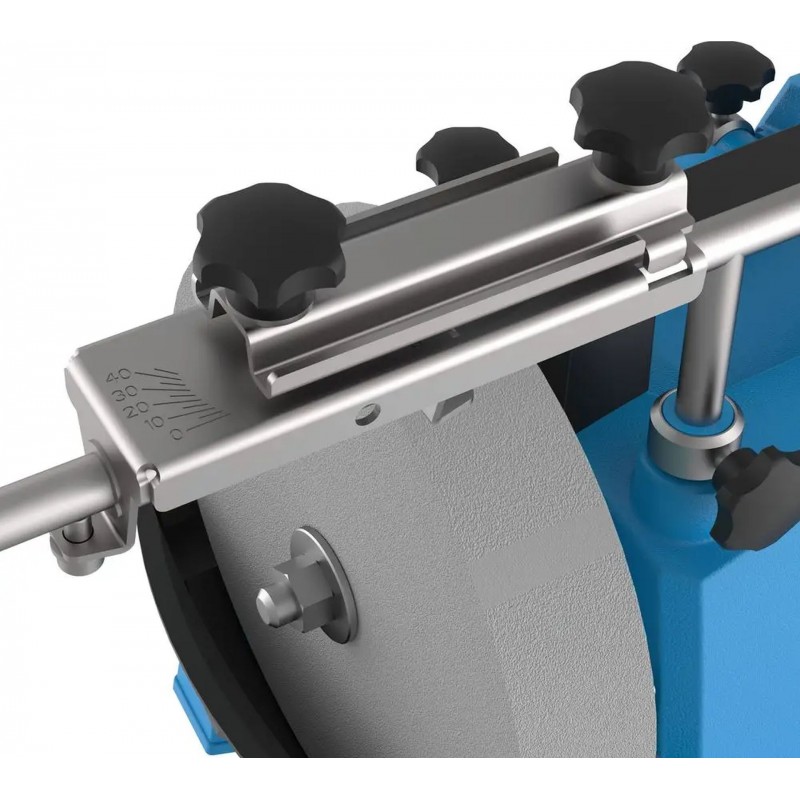 Konstrukce z tvrzeného plastu a kotouč pro mokré broušení K220 s nádobkou na vodu zajišťují bezpečné a efektivní broušení. Bruska obsahuje i úhloměr a brusnou pastu. Pro snadný transport je součástí praktická rukojeť.